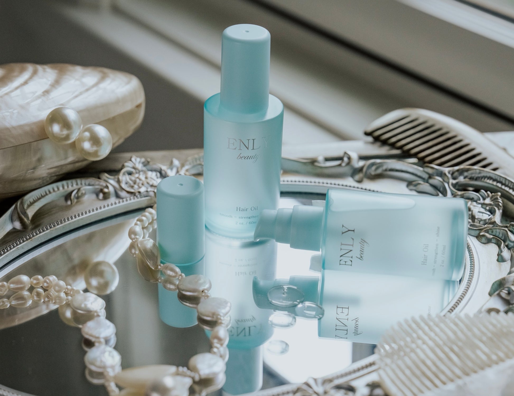 ENLY beauty Hair Oil is a luxurious blend designed to smooth frizz, strengthen strands, and deliver a soft, radiant shine. This lightweight formula absorbs quickly—never greasy, always nourishing. Ideal for daily use on damp or dry hair.